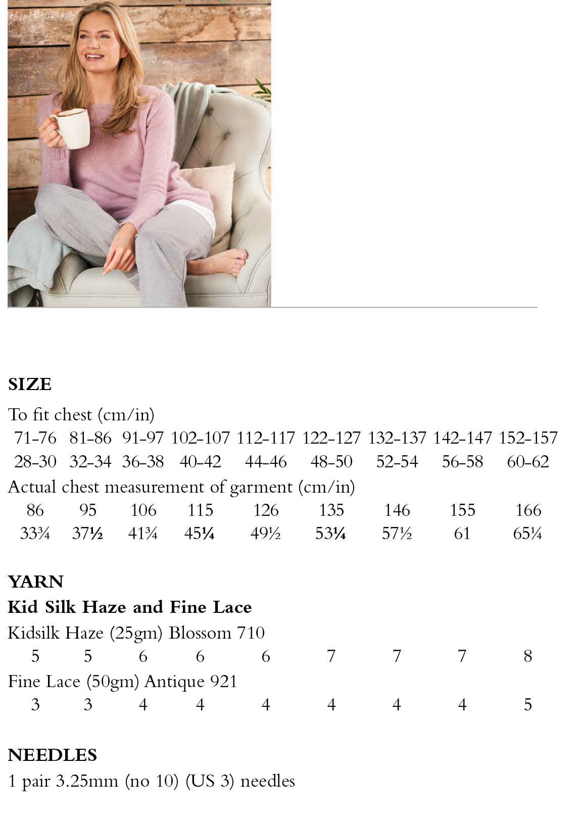 This stocking stitch sweater from Quail Studio is simply elegant. Kidsilk Haze and Fine Lace are worked together to create a beautifully soft, delicate fabric and the classic crew neck and ribbed hems make this a key wardrobe essential.