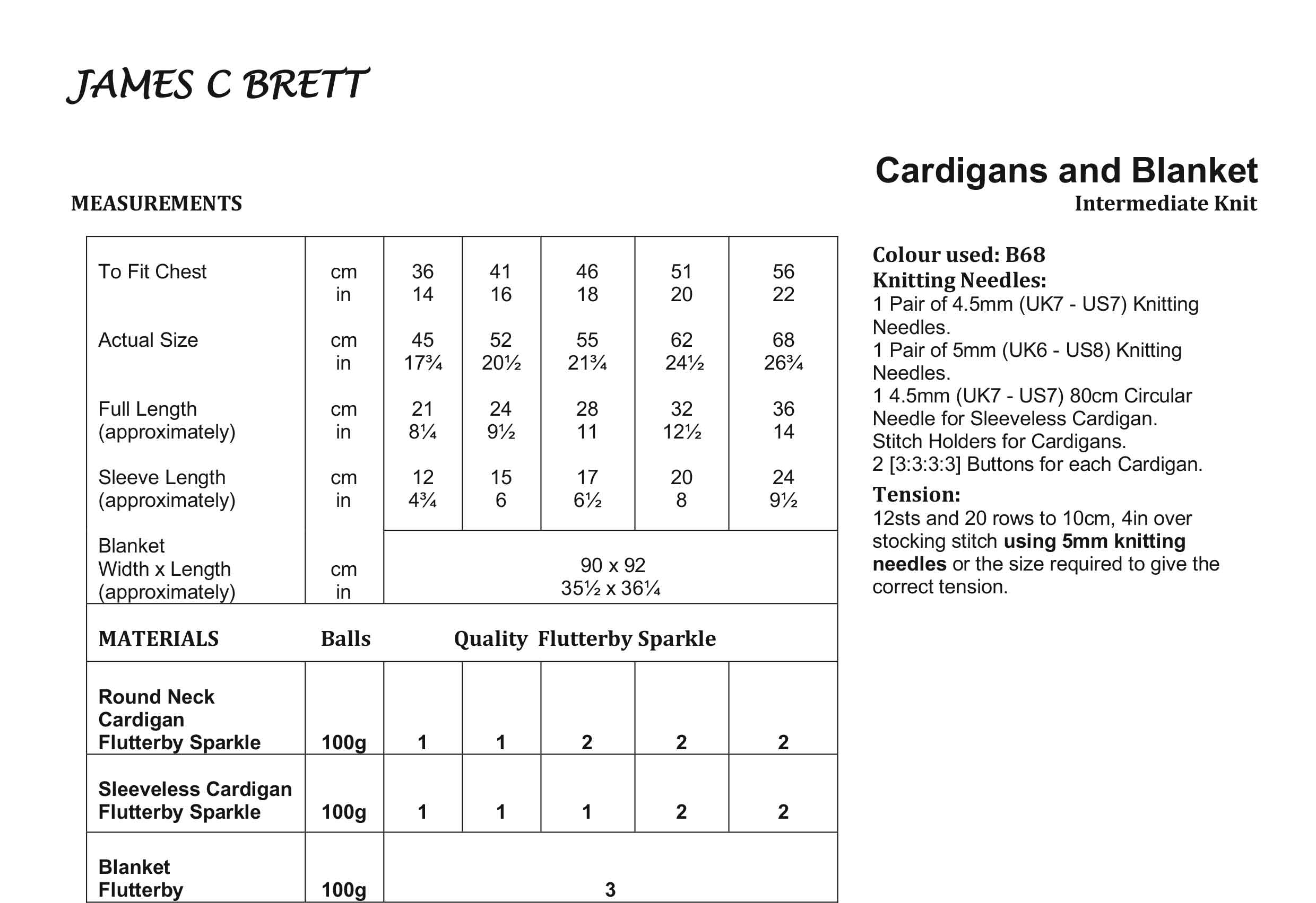 James C BrettBrand_James C BrettCollection Patterns and BooksFor_BabiesPatterns PaperPhysical PatternPopular Garments_BlanketsPopular Garments_Cardigans and BolerosProduct Type_PatternsTechnique_KnitWool Weight_BabyWool Weight_Chunkyadd-to-cart2025-04-11//www.blacksheepwools.com/cdn/shop/files/JB949-Materials-Box.jpg?v=174359999146348016320756Default Title3,95//www.blacksheepwools.com/cdn/shopifycloud/storefront/assets/no-image-2048-a2addb12.gifhttps://www.blacksheepwools.com/en-ie/products/cardigan-and-blanket-in-james-c-brett-flutterby-sparkle?variant=46348016320756InStockDefault Title