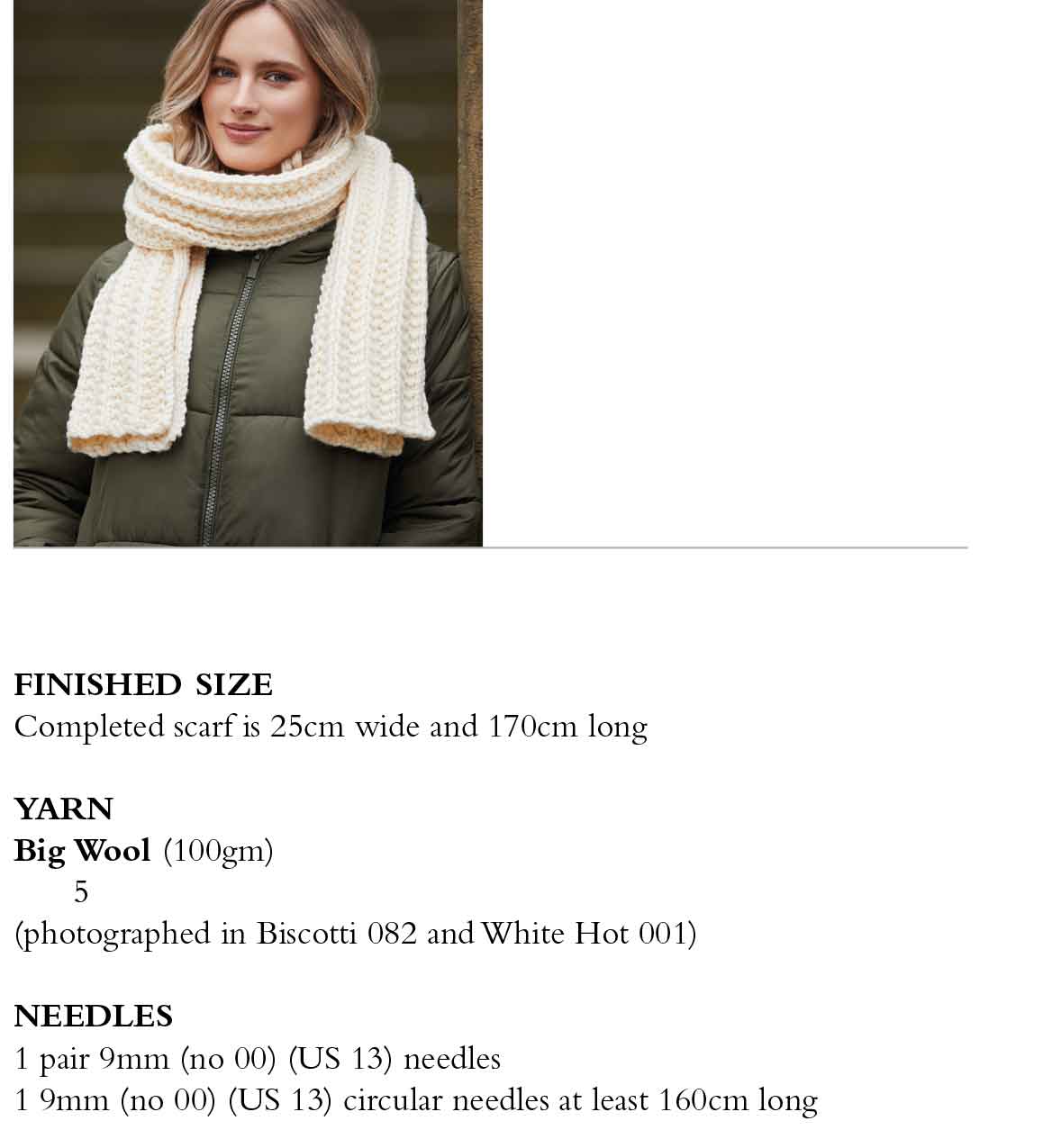 Wrap up against the colder weather with this classic scarf from Quail Studio. Knitted using an all-over broken rib in chunky Big Wool, this is the ultimate winter accessory.