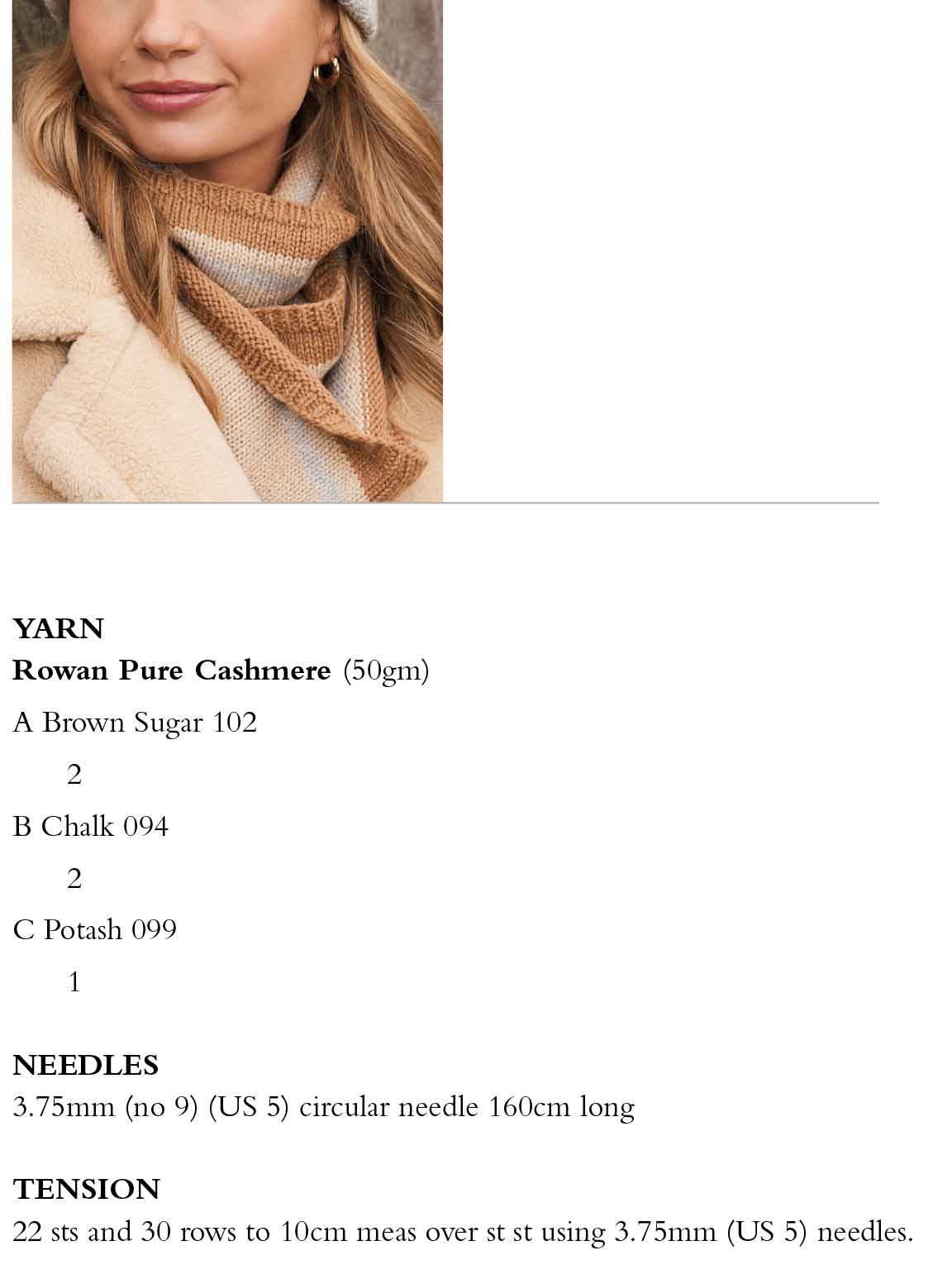 Add a touch of luxe to your winter look with this cashmere cowl. Simple stocking stitch stripes of three soothing shades are bordered with a classic rib edging.