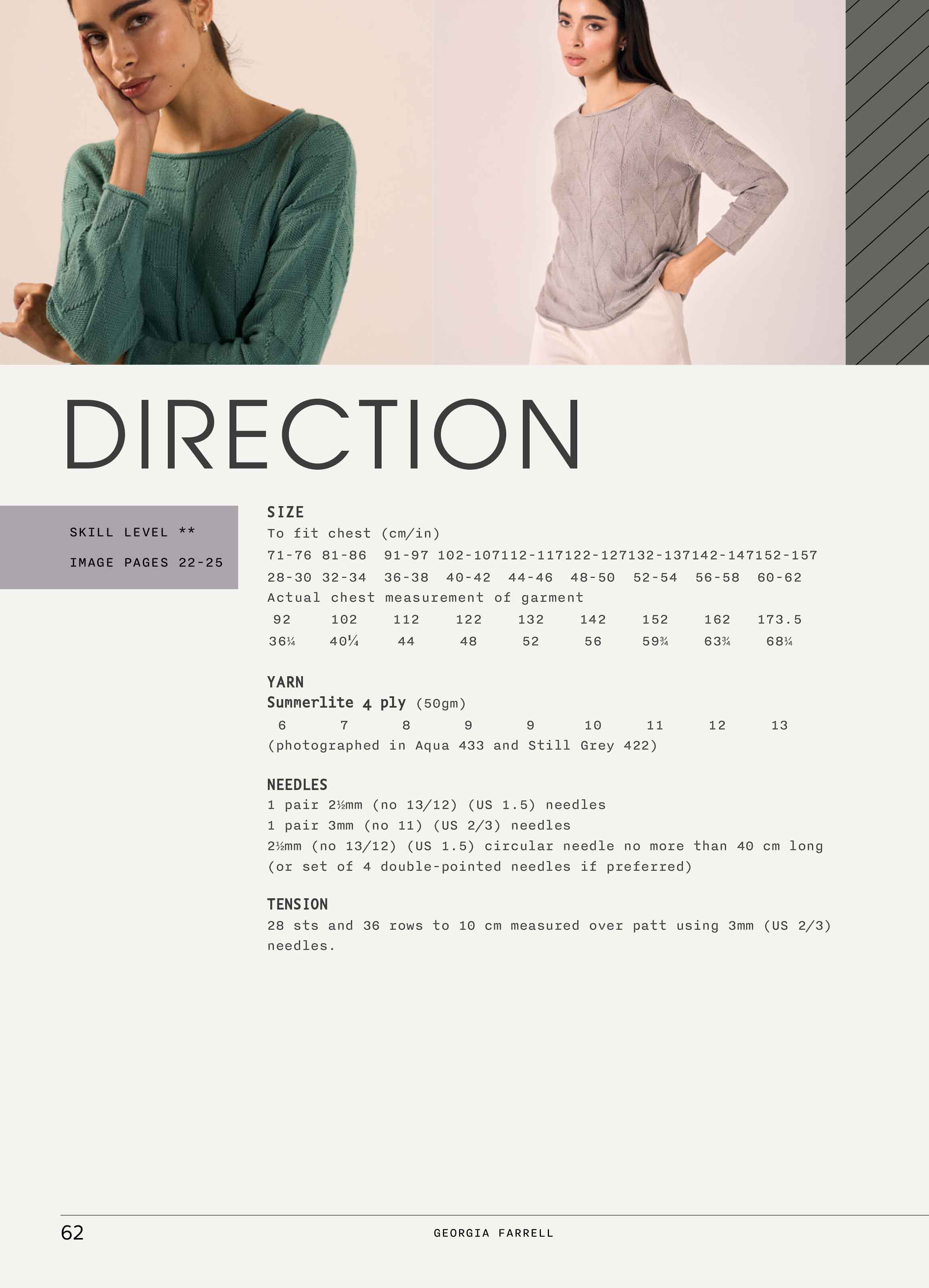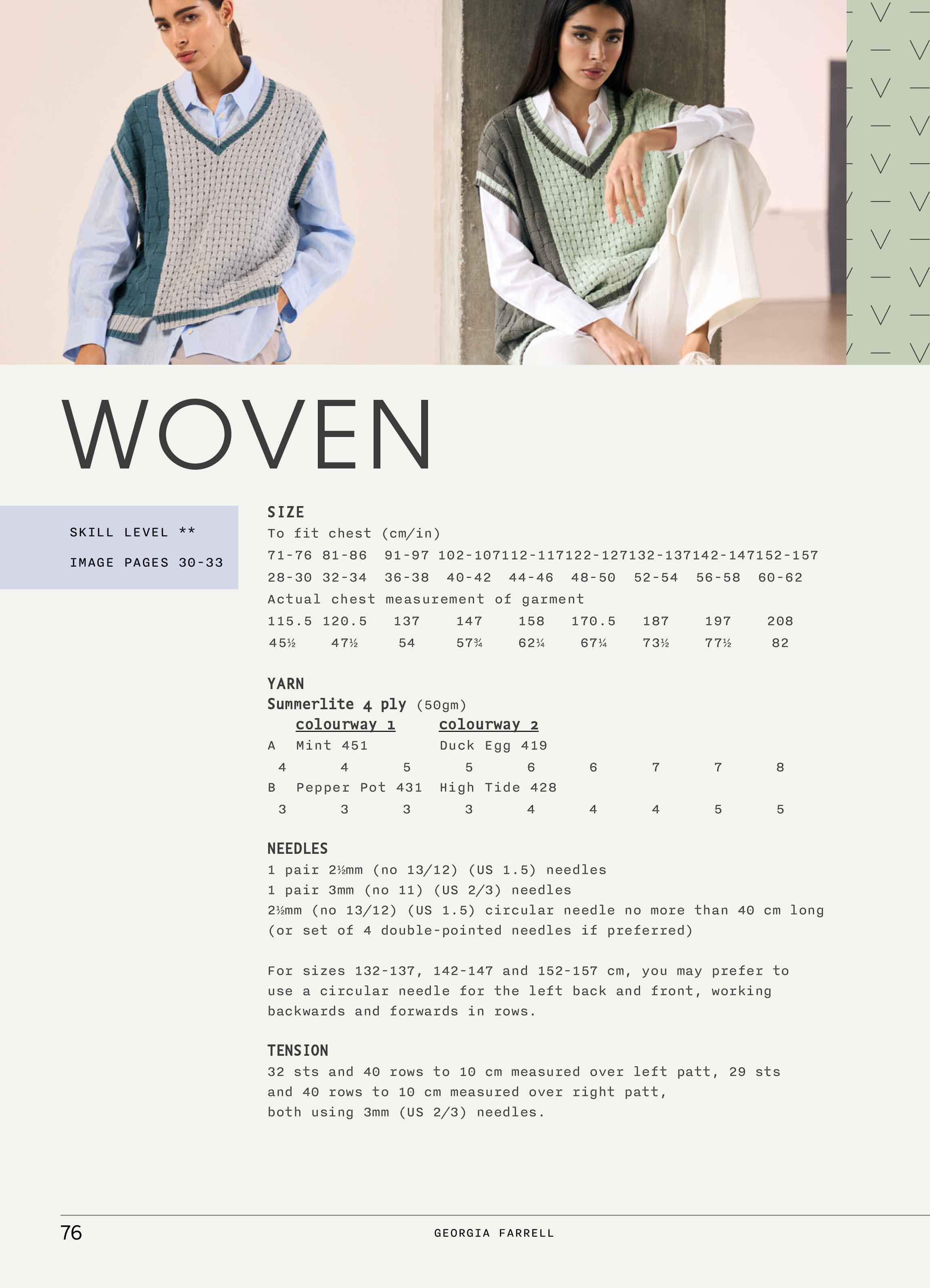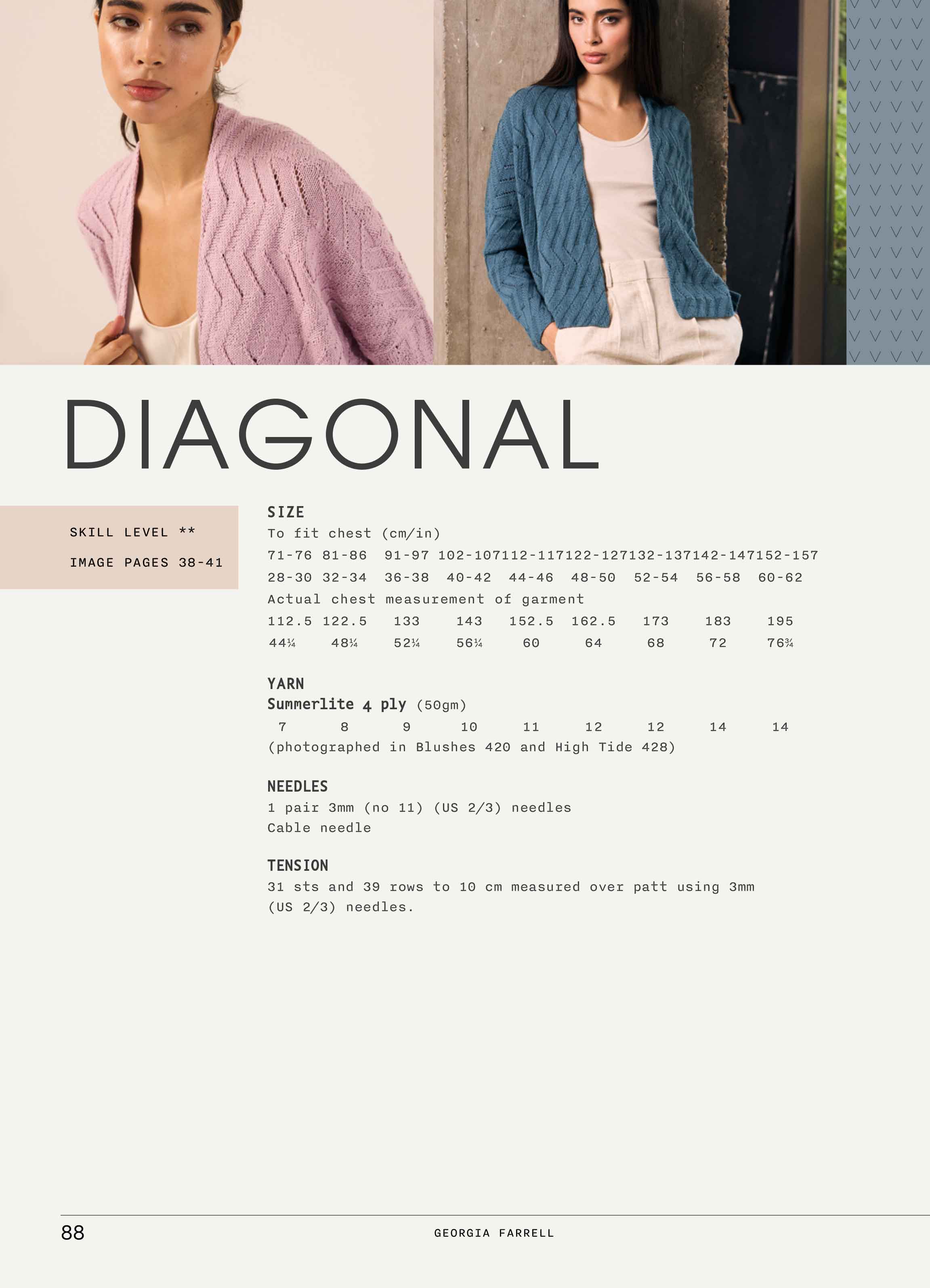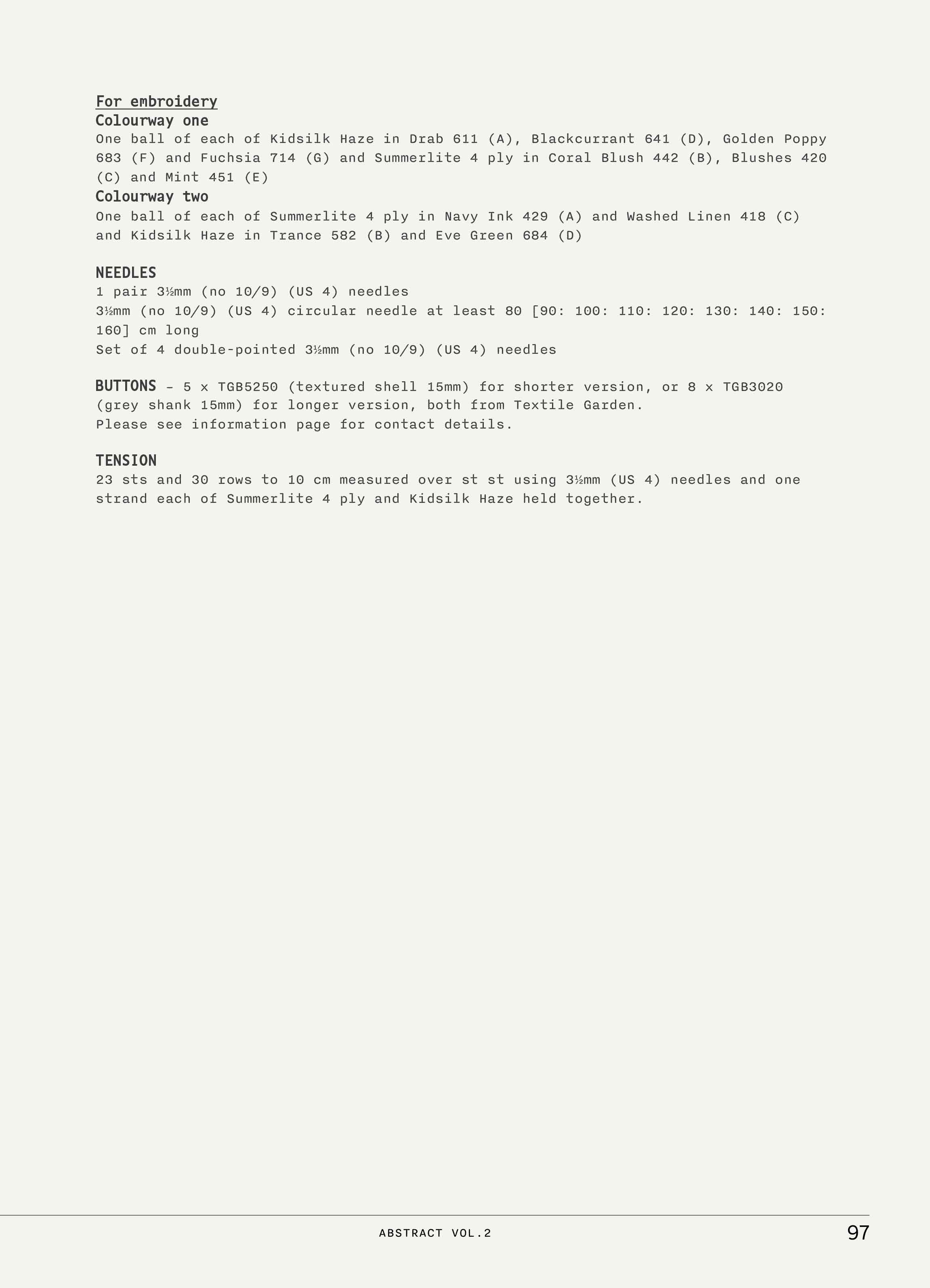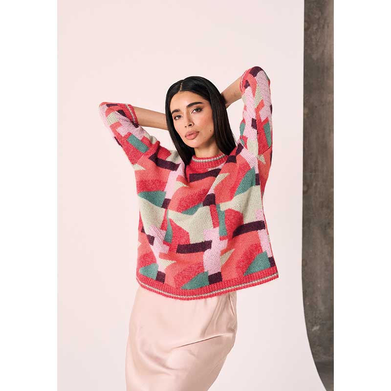 Abstract Vol 2 is the highly anticipated follow up to Georgia Farrell’s original Abstract collection. Building upon the strong graphic feel of the first collection, Georgia has carefully balanced a mix of tessellating, geometric patterns and collage-style colour blocks through the use of contrasting lines, angles and shapes. Featuring two yarns – Summerlite 4ply and Kidsilk Haze – this collection of eight designs including sweaters, tees and cardigans, offers different options and a choice of punchy, fresh colourways.