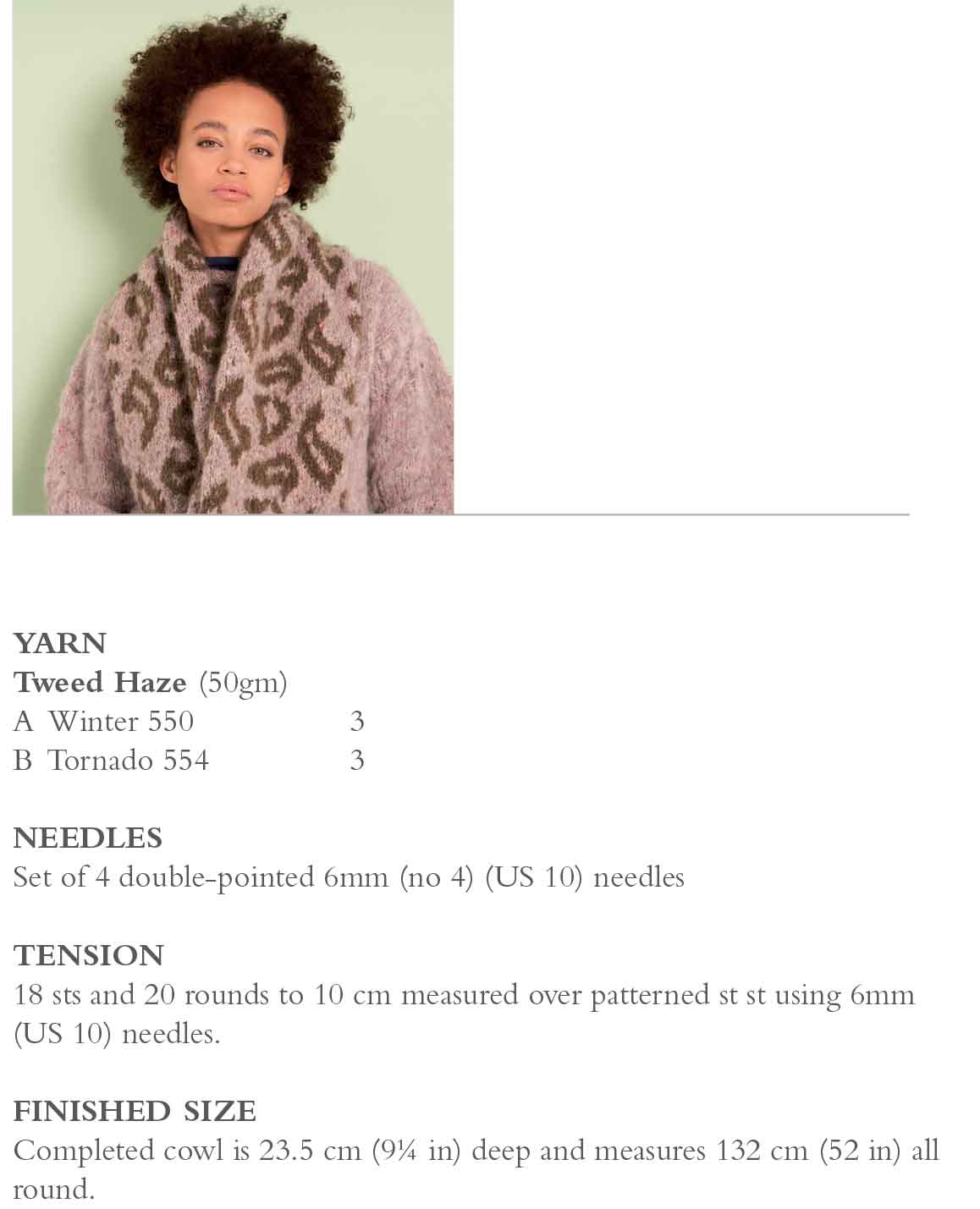 Make a statement with this bold, paisley cowl from Martin Storey. Knitted in the round using the chunky, yet lightweight, Tweed Haze, this must-have accessory will keep you warm and cosy all winter long.