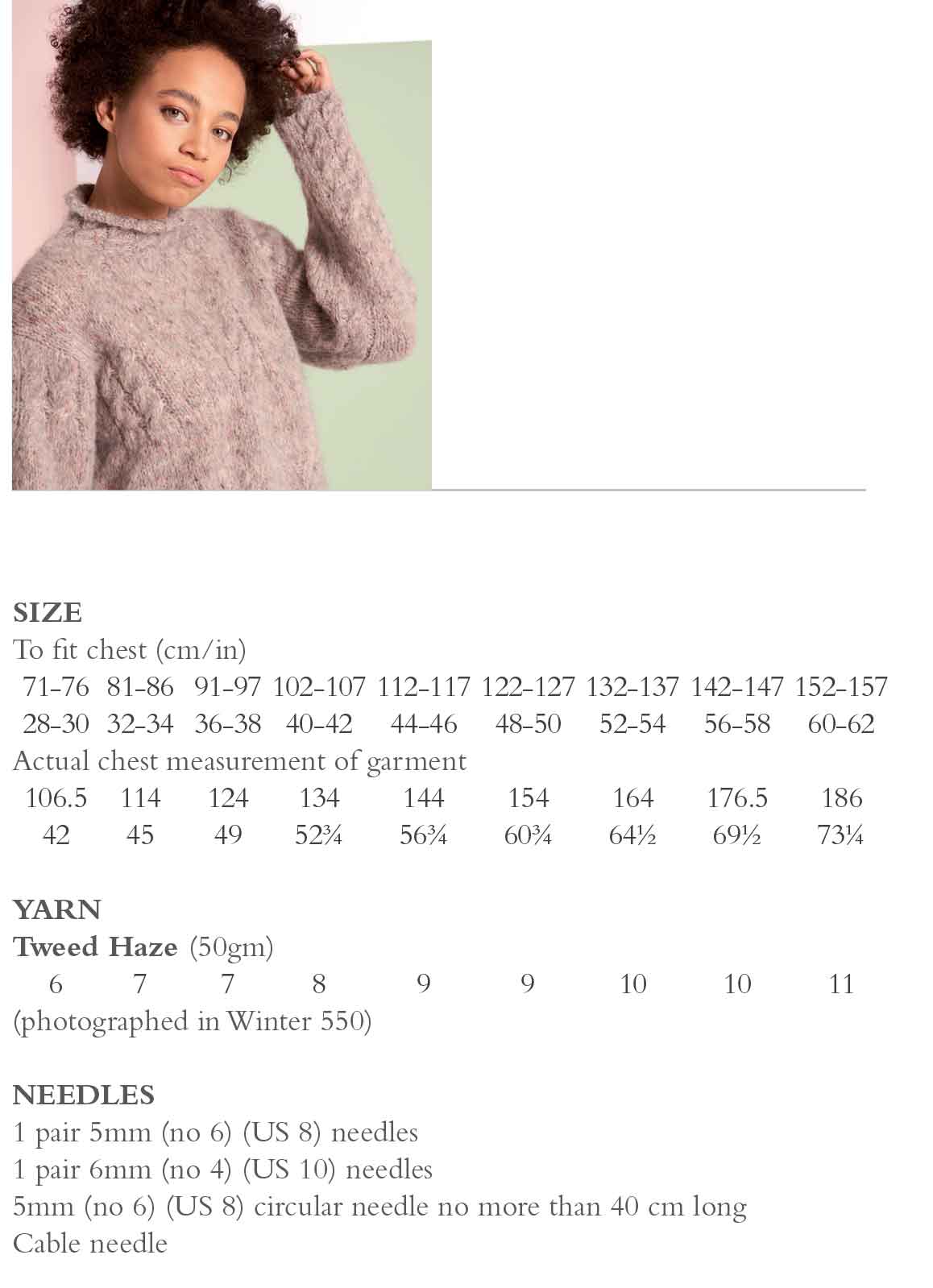 This pattern appears in Rowan Winter Haze. Make a playful statement with these plush, easy to layer pieces, ideal for wrapping up in the cooler months. Martin Storey, Chloe Thurlow and Quail Studio have used Tweed Haze to create this collection of relaxed sweaters and accessories, blurring the lines between classic and modern style,