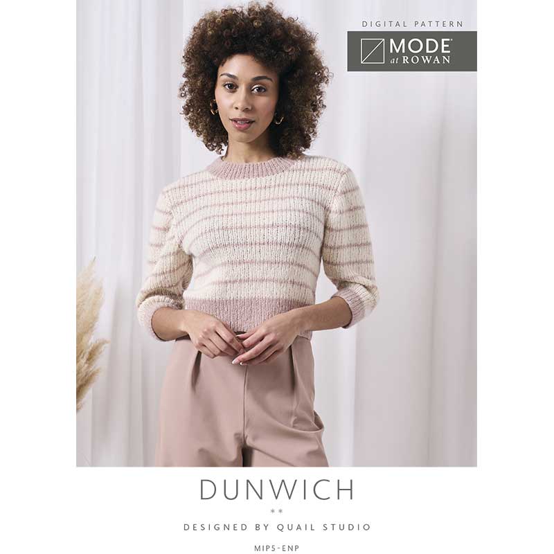 Dunwich is a fitted cropped top that hits at the waist, featuring a slight puff on the 3/4 length sleeve. It showcases delicate stripes in a K1, P1 rib pattern, knitted with two alpaca cotton shades on 3.5 and 3.75mm needles. Its timeless appeal is complimented by the understated yet sophisticated rib pattern, ensuring this piece remains a staple in your collection for years to come.