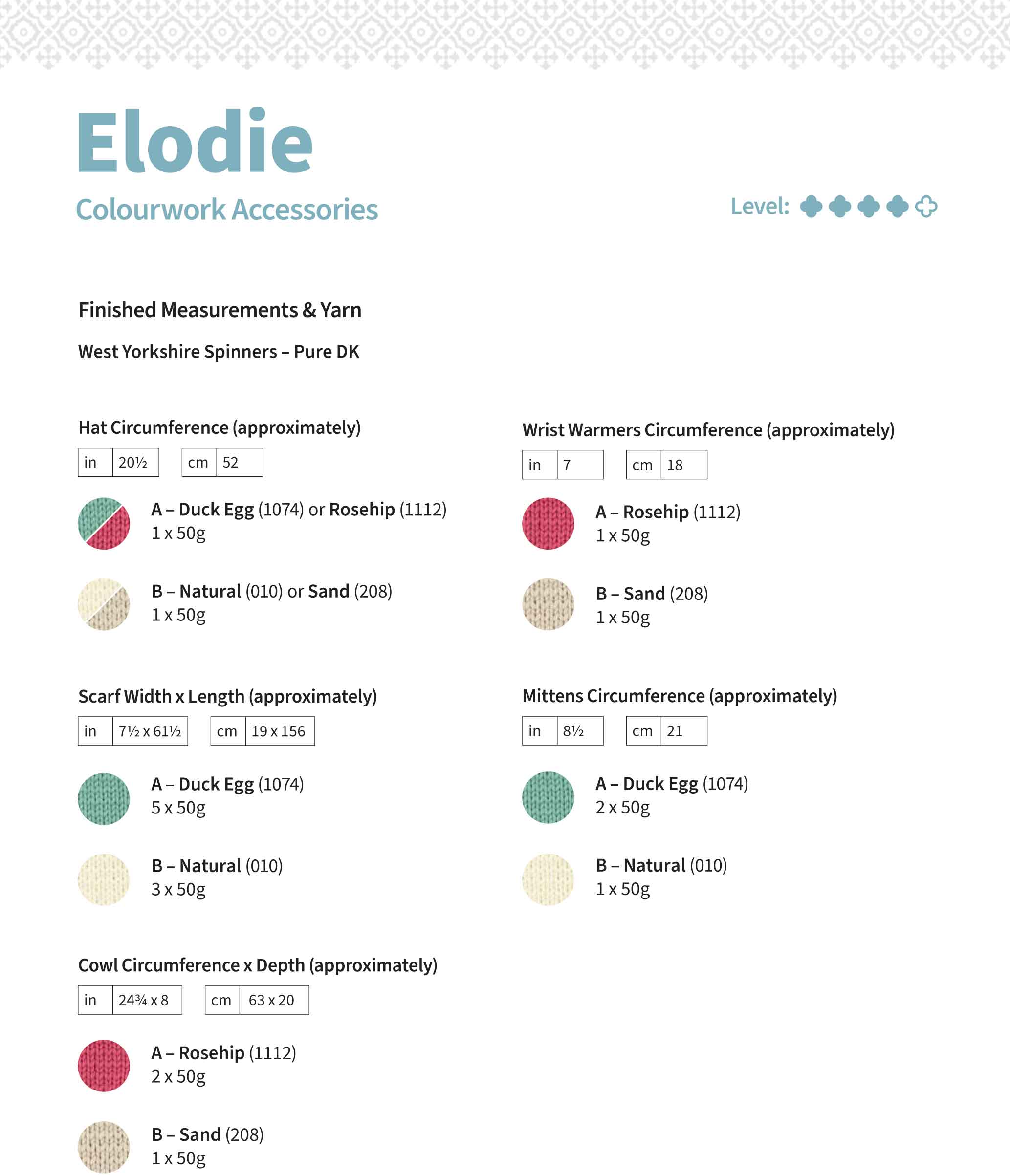 HomeKnitting Patterns & BooksElodie Colourwork Accessories in West Yorkshire Spinners Pure Dk - Digital Pattern DBP0242