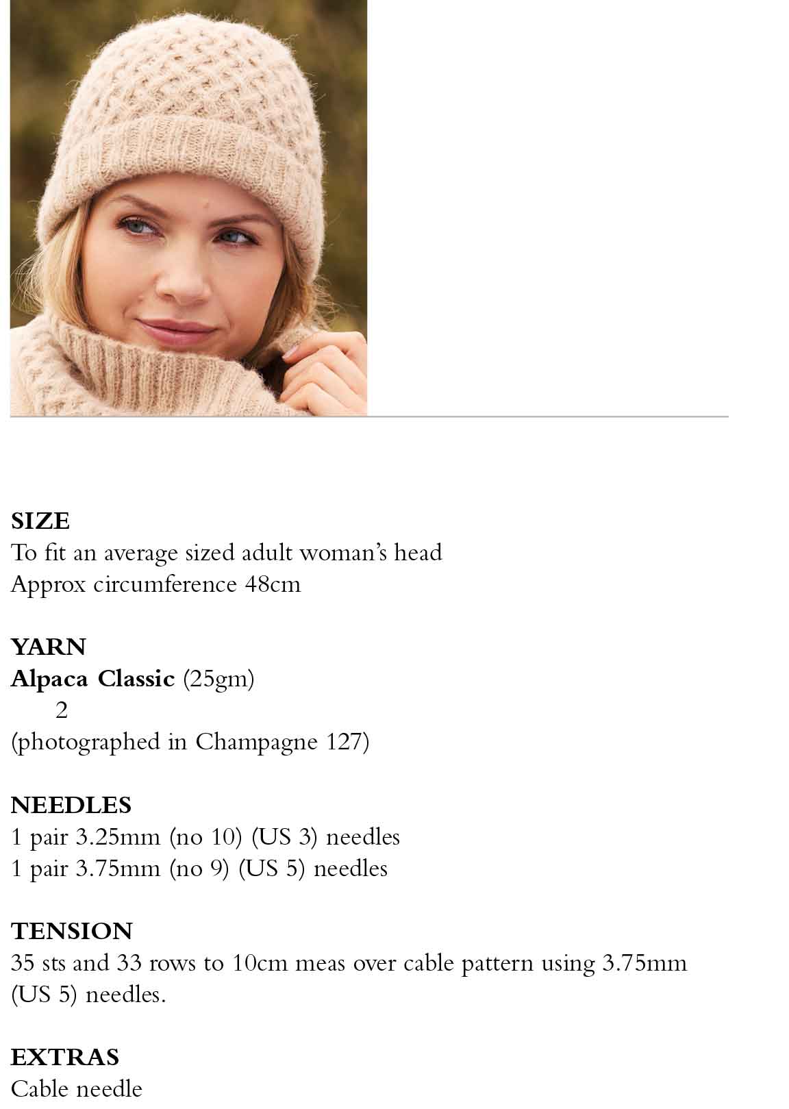 An intricate lattice cable adorns this chic beanie by Quail Studio. A ribbed brim is the perfect finishing touch to this autumnal accessory which is worked in luxurious Alpaca Classic.
