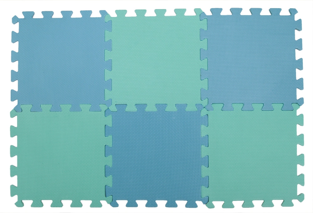 Pack of 9 mat pieces, each 1ft x 1ft. These foam rubber mats fit together like puzzle pieces to make the size and shape you need.