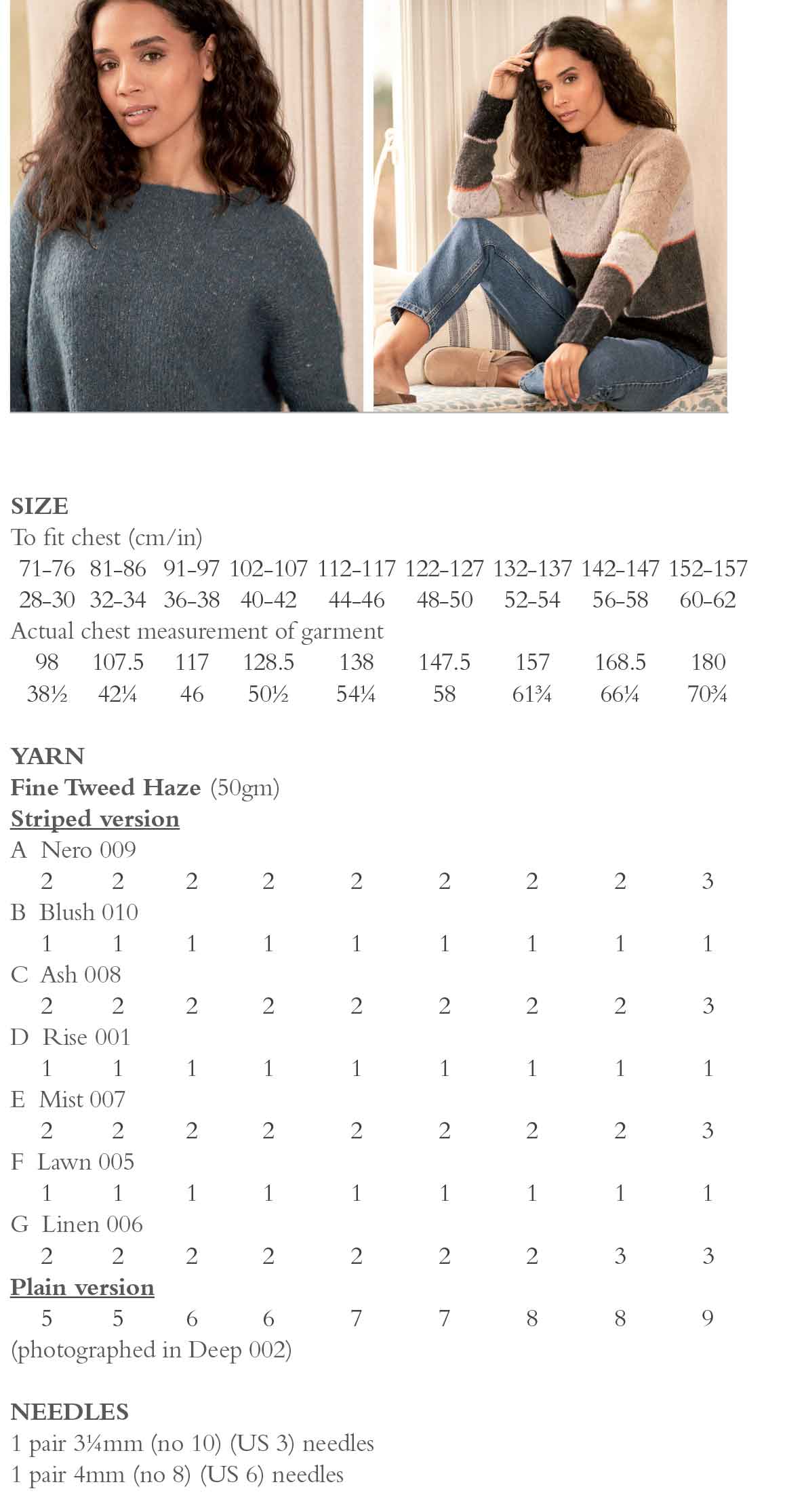 This pattern appears in Rowan Knitting & Crochet Magazine 74. In Fine Tweed Haze we explore our new yarn which is a lightweight version of much-loved Tweed Haze. With a modern tweed look, punctuated with flecks of contrasting colours, it is as perfect for one-colour designs as it is for Fair Isle and slip stitch. Designers Martin Storey, Lisa Richardson, Georgia Farrell, Chloe Thurlow and Quail Studio have created a classic collection of versatile garments and accessories, whilst exploring interesting stitch work and techniques, including top down and in the round.