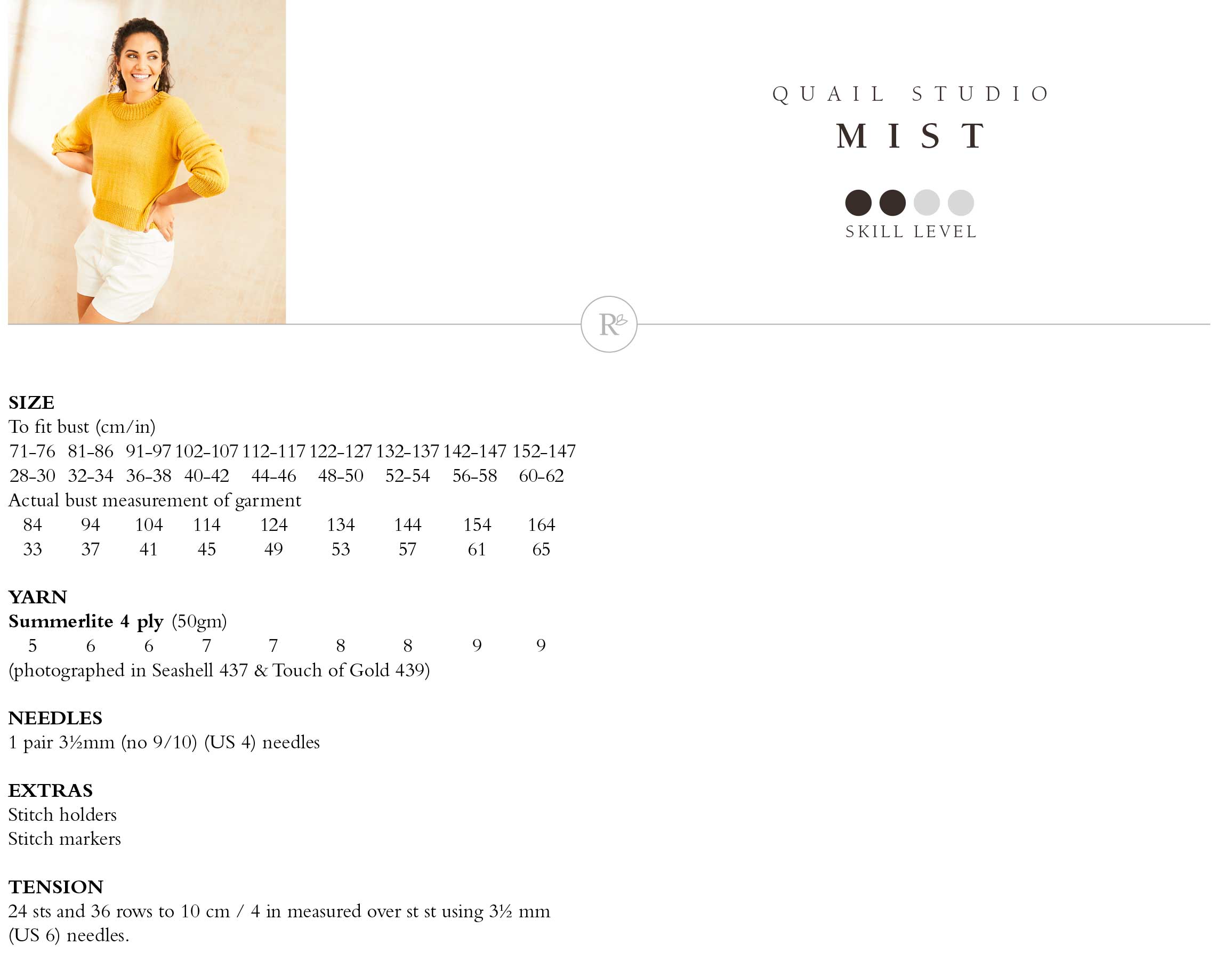 Knitted using Summerlite 4ply, this cotton sweater combines simple, smooth, stocking stitch with deep ribbed bands. Choose to wear it on its own or pair it with ‘Summer’ skirt for a head-to-toe summer style statement.