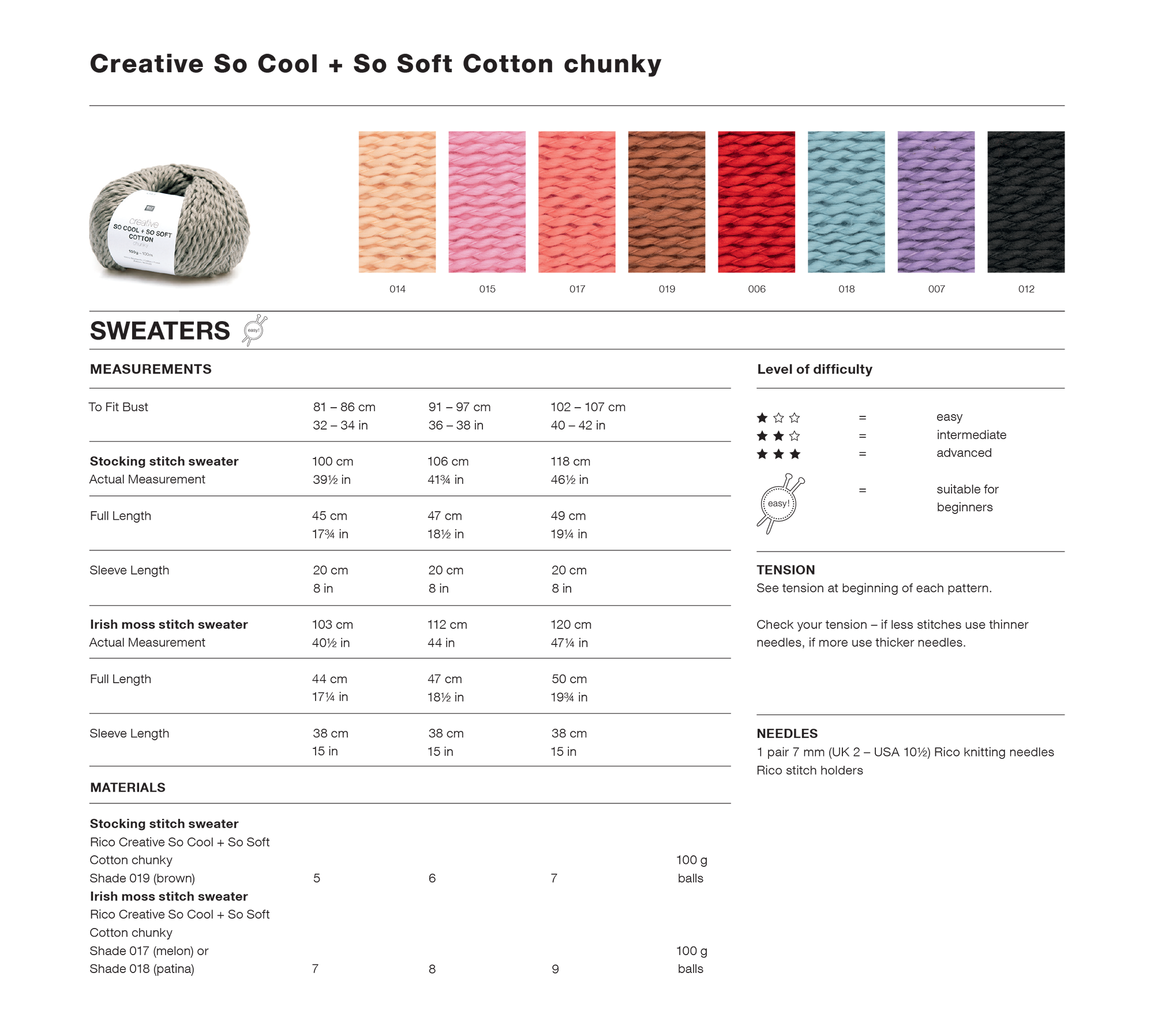 Short and Long Sleeve Sweaters in Rico Creative So Cool + So Soft Cotton Chunky