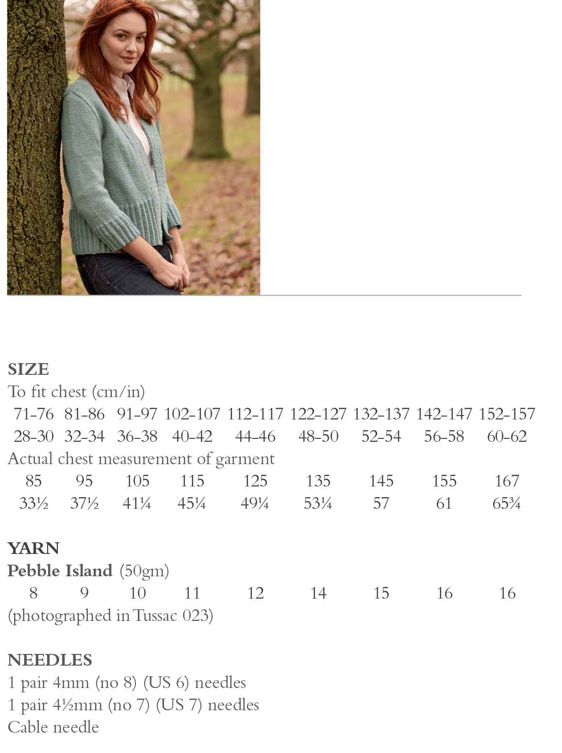 This pattern appears in Rowan Woodland . Pebble Island is a fully traceable and luxurious pure merino wool. In his Woodland collection, designer Martin Storey takes this exceptional yarn and creates an autumnal ensemble of stylish garments and accessories. Featuring beautiful colourwork alongside Martin’s trademark textures, this collection is the ideal showcase for this very special yarn.