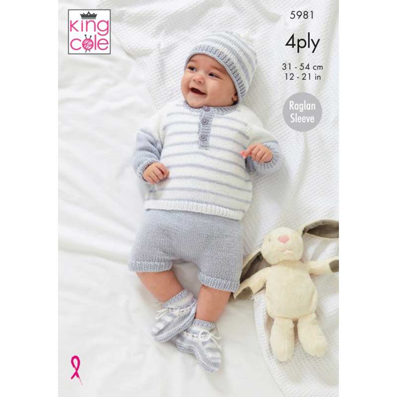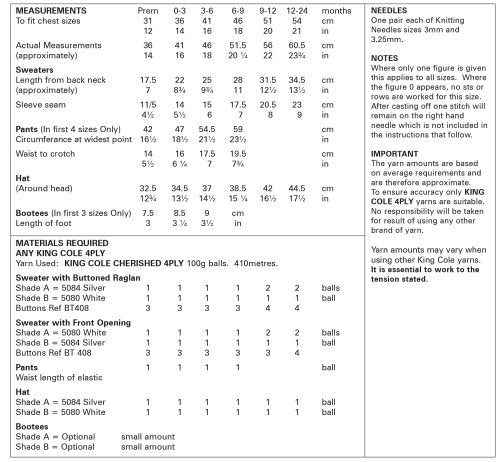 Sweaters, Pants, Hat & Bootees Knitted in King Cole Cherished 4Ply